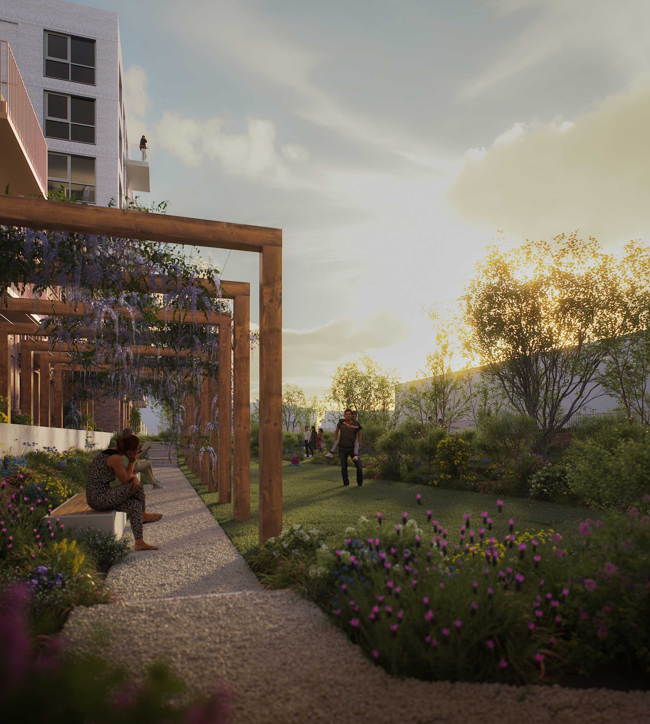 De wijk is levendig, groen en duurzaam. Een plek waar je je buren kent, waar kinderen kunnen spelen, waar je de natuur omarmt én het centrum binnen handbereik hebt. Hier woon je niet zomaar – je maakt deel uit van een nieuwe gemeenschap in de stad.
